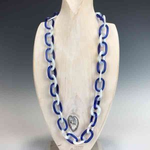 • Blue and White Embossed Glass Chain Necklace